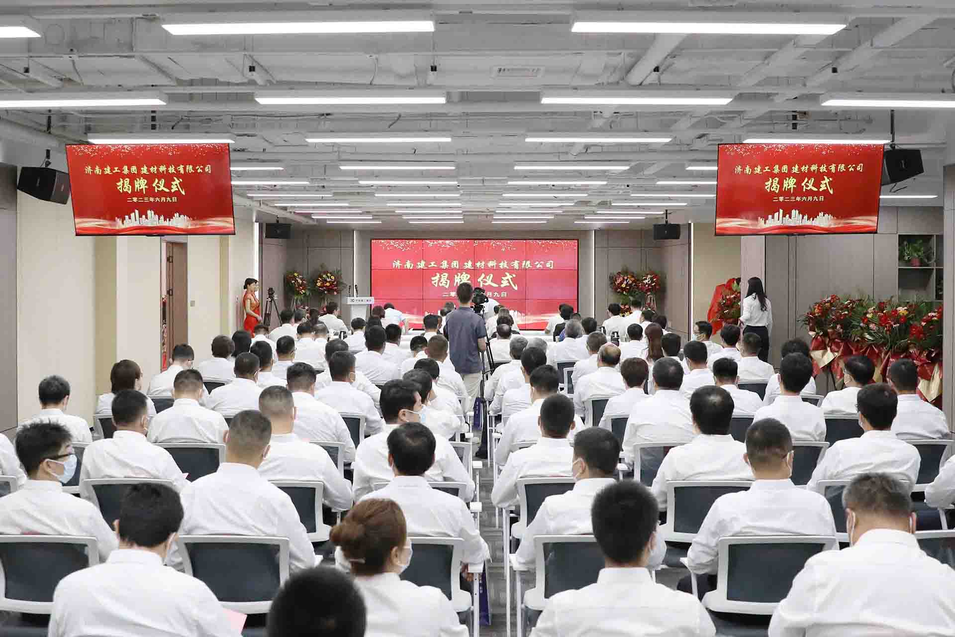 在熱烈的掌聲中,濟(jì)南市國(guó)資委黨委委員、副主任沈文濤與濟(jì)南建工集團(tuán)黨委書記、董事長(zhǎng)曹曉巖共同為濟(jì)南建工集團(tuán)建材科技有限公司成立揭牌。